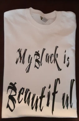 My Black is Beautiful T- Shirt is made with 100% cotton fabric. All products are printed to order in the US and are ready within 2-4 business days. If you have any questions, please e-mail me at denysrose.inspire@yahoo.com