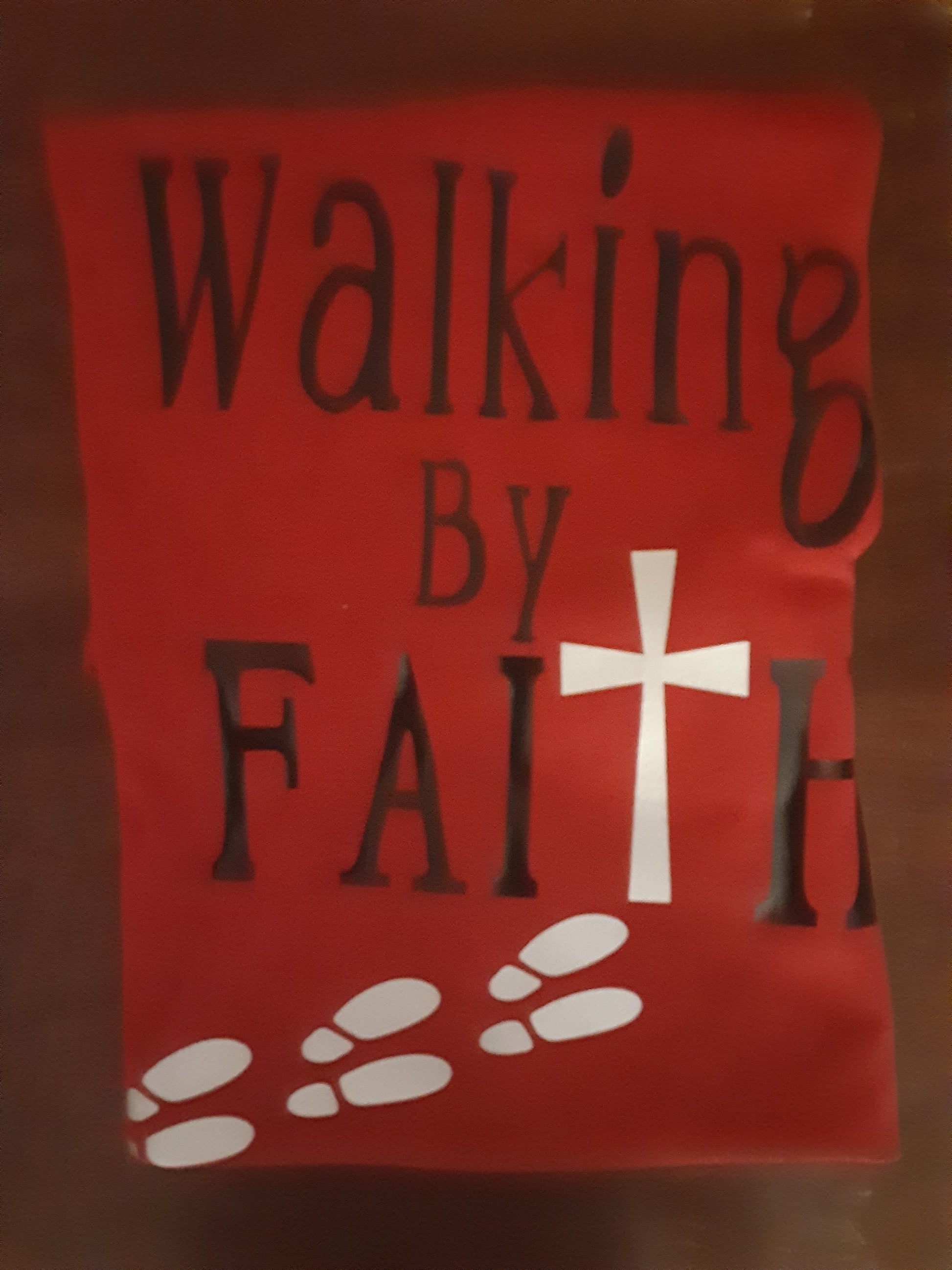Walking by Faith T- Shirt is made with 100% cotton fabric. All products are printed to order in the US and are ready within 2-4 business days. If you have any questions, please e-mail me at denyrose.inspire@yahoo.com
